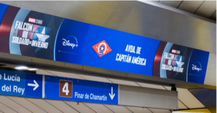Con motivo del estreno de la serie de Marvel, Falcon y el Soldado de Invierno, el Metro de Madrid transforma su apariencia en la estación de Avenida de América. Durante los próximos 15 días, el logo del Metro se convierte en el escudo del Capitán y la estación pasará a llamarse Avenida del Capitán América.