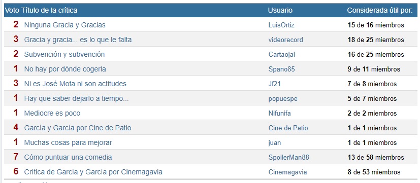 Pese a las malas críticas, García y García alcanza la sexta posición en el listado de recaudación del cine español en todo el año 2021, según el Ministerio de cultura. Un dato que plantea si el verdadero éxito de una obra consiste en ir a verla para comprobar si realmente es tan mala como dicen.