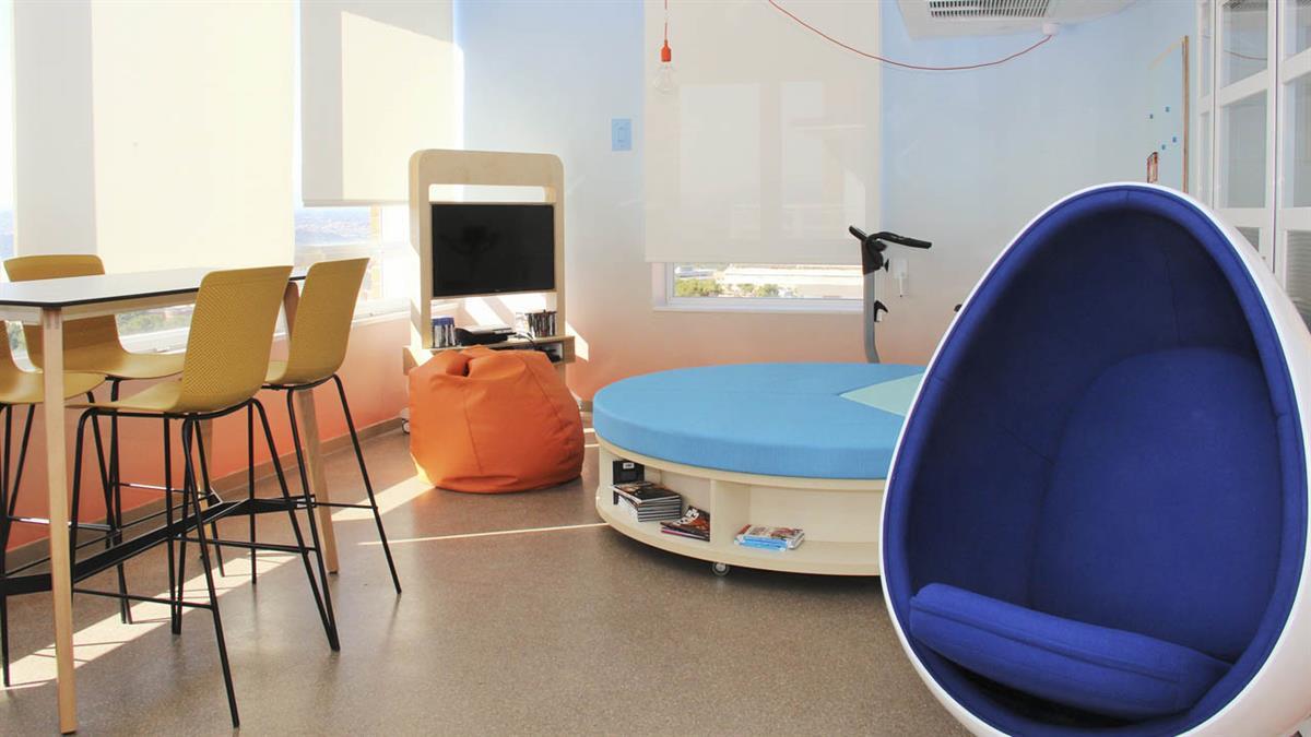 Este lugar de distensión y esparcimiento cuenta con una terraza exterior con vistas a la sierra madrileña, un jardín vertical, hamacas y un futbolín en el que se puede jugar al aire libre. A su vez, la sala podrá ser aprovechada por los profesores del Aula Hospitalaria en horario de mañana, de manera que las maestras podrán atender de forma personalizada a los estudiantes según sus edades.