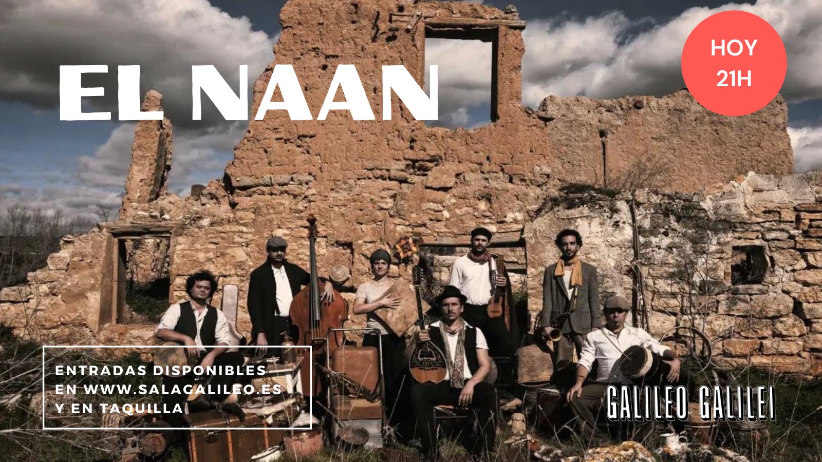 Las entradas para asistir al concierto de El Naán en Madrid, que dará comienzo a las 21:00 horas, se pueden adquirir a través de la web: https://salagalileo.entradas.plus/entradas/es/entradas-musica-el-naan y en la taquilla de la Sala (Calle Galileo, 100), una hora antes del inicio de su actuación.