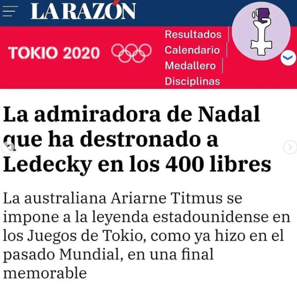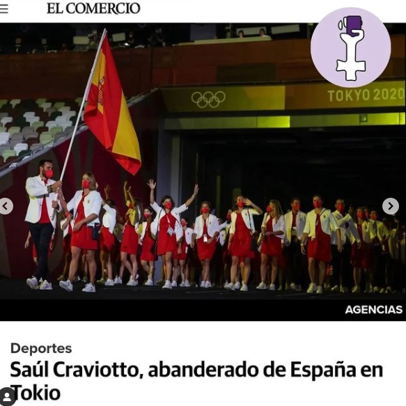 El viernes 23 de julio fue la ceremonia inaugural de Tokio 2021 y el desfile de los países, donde la mayoría llevaban dos abanderados. En nuestro caso, fueron Saúl Craviotto y Mireia Belmonte, pero el medio El Comercio, decidió que solo fue el hombre quien lo hizo con el titular “Saúl Craviotto, abanderado de España en Tokio”. De nuevo, invisibilizando.