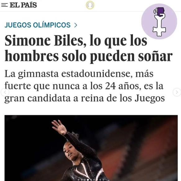 No suficiente con esto, hay otros titulares destacables. El martes 27 de julio Simone Biles decidió anteponer su salud mental al oro olímpico, se retiró de la final de gimnasia artística porque sufría mucha presión. Con 19 años se hizo con, nada más y nada menos, que con 4 oros en esta disciplina. Se la considera la mejor, o una de las mejores, gimnastas de todos los tiempos. el País, en vez de darle relevancia a todo lo que ha logrado, decidió escribir en el titular “Simone Biles, lo que los hombres solo pueden soñar”. Una vez más, anteponiendo y dando importancia a los hombres en los méritos de una mujer.