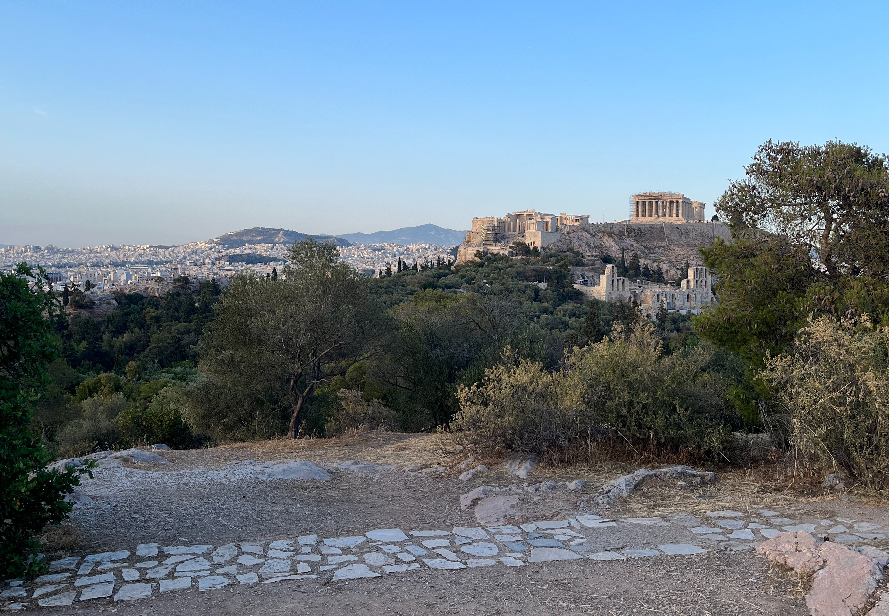 Si queréis disfrutar de un buen atardecer o amanecer antes o después de haber visitado la Acrópolis, debéis subir hasta la cima de la colina Filopappou, a escasos metros del lugar más importante de la ciudad. Un sitio en el disfrutar del 'skyline' ateniense. No puedo describir con palabras las sensaciones que me recorrieron el cuerpo al llegar arriba y verlo absolutamente todo a mis pies con el sol escondiéndose entre las montañas.