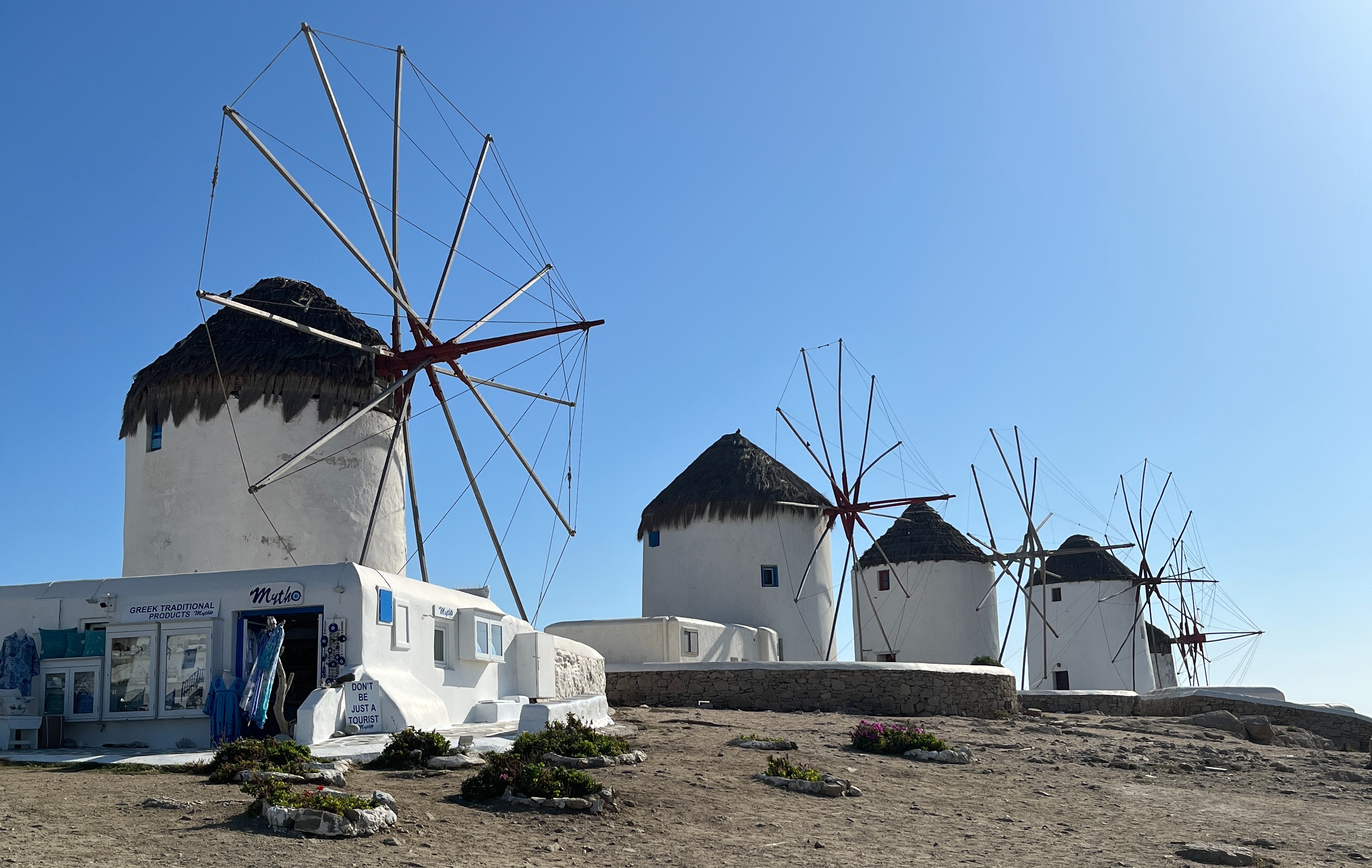 A pesar de que Mykonos como tal no tiene muchos lugares emblemáticos que visitar, pues es conocida como una de las 'islas de la fiesta' europeas, uno de los indispensables si vais, son los molinos de Little Venice. Desde ellos ves toda la zona con otra perspectiva.