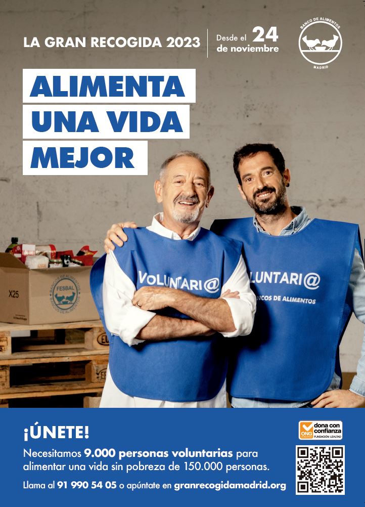 El Banco de Alimentos de Madrid necesita, un año más, voluntarios para prestar su ayuda en la Gran Recogida de 2023, campaña que se desarrollará desde el 24 de noviembre hasta el 5 de diciembre en multitud de supermercados e hipermercados de toda la región. Las donaciones se podrán realizar abonando una aportación al pasar por caja, de manera que desde la entidad puedan ir adquiriendo los productos que hagan más falta, si bien en algunos centros existirá la modalidad híbrida, para poder entregar también artículos de comida no perecedera de forma física y directa.