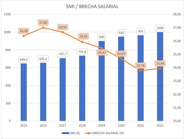 Salario Mínimo Interprofesional (SMI) y evolución de la brecha salarial.