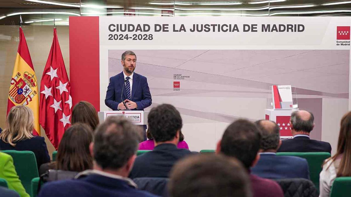La Comunidad de Madrid licitará antes de abril la Ciudad de la Justicia de la capital, cuyas obras de construcción está previsto que concluyan a finales de 2028. Así lo ha anunciado el consejero de Presidencia, Justicia y Administración Local, Miguel Ángel García Martín, durante la presentación del anteproyecto de esta nueva infraestructura a las autoridades de Judicatura y Fiscalía.
