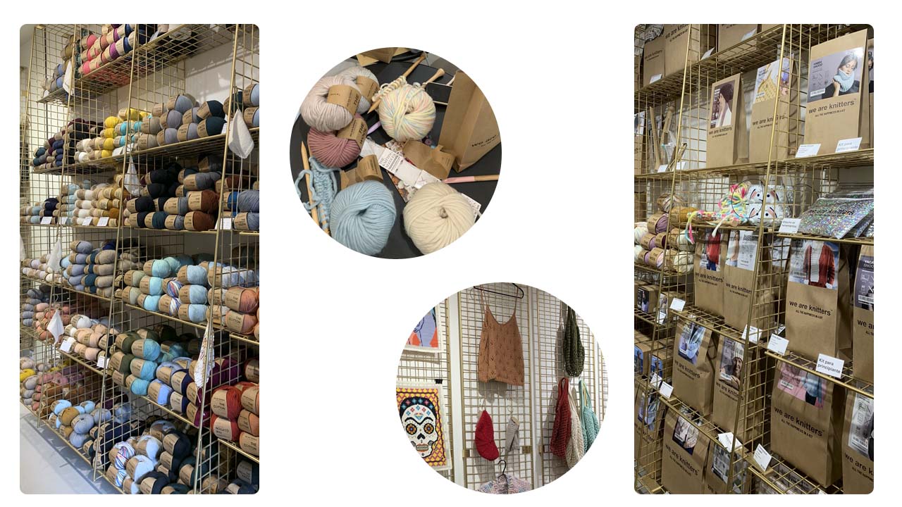 Por último, y no menos importante, me gustaría hablar de la tienda, un espacio no muy grande, pero súper acogedor, donde se podía observar el buen gusto y el esmero con el que habían tratado la decoración, dejando siempre a la vista los distintos kits que podías adquirir e incluso las prendas, accesorios y complementos ya confeccionados que te servían de ejemplo de las infinitas posibilidades que te brinda We Are Knitters, y que puedes confeccionar con tus propias manos.
