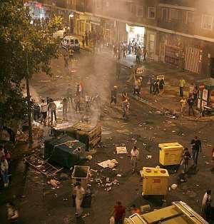 Pis, vómitos, bolsas, botellas, Sanse se desmadra.