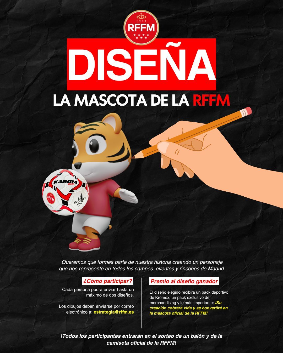 La Real Federación de Fútbol de Madrid ha convocado un concurso para encontrar a su mascota oficial. El plazo estará abierto hasta el 31 de agosto y se podrá presentar hasta dos propuestas por participantes sin importar la edad (en el caso de los menores, se debe cumplimentar una autorización).