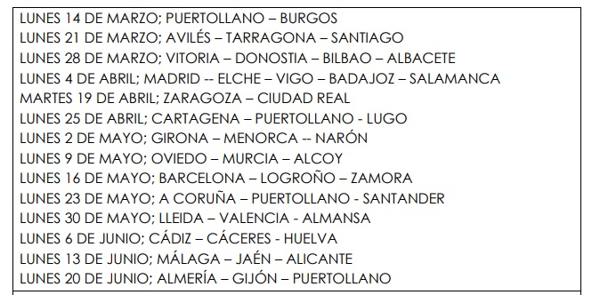 Así mismo, las siguientes concentraciones hasta el mes de Junio serán las siguientes:
