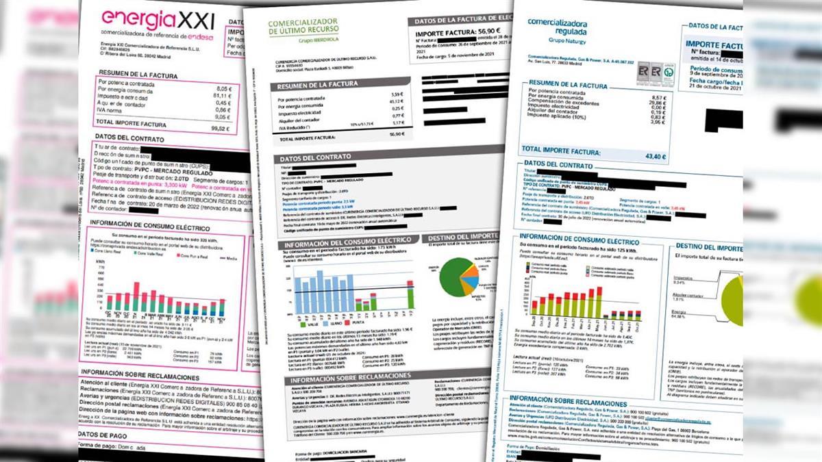 Tanto en la factura de la comercializadora de PVPC de Endesa como en la de Iberdrola se utilizaban tres tonalidades de azul que además resultaban prácticamente idénticas, incumpliendo claramente el contenido de la resolución de la Dirección General de Política Energética y Minas. Por su parte, en la de Naturgy se usaba el azul para el periodo punta, el naranja para el llano y sólo se seguía el criterio del modelo de factura de la normativa en el periodo valle, donde sí se empleaba el color verde.