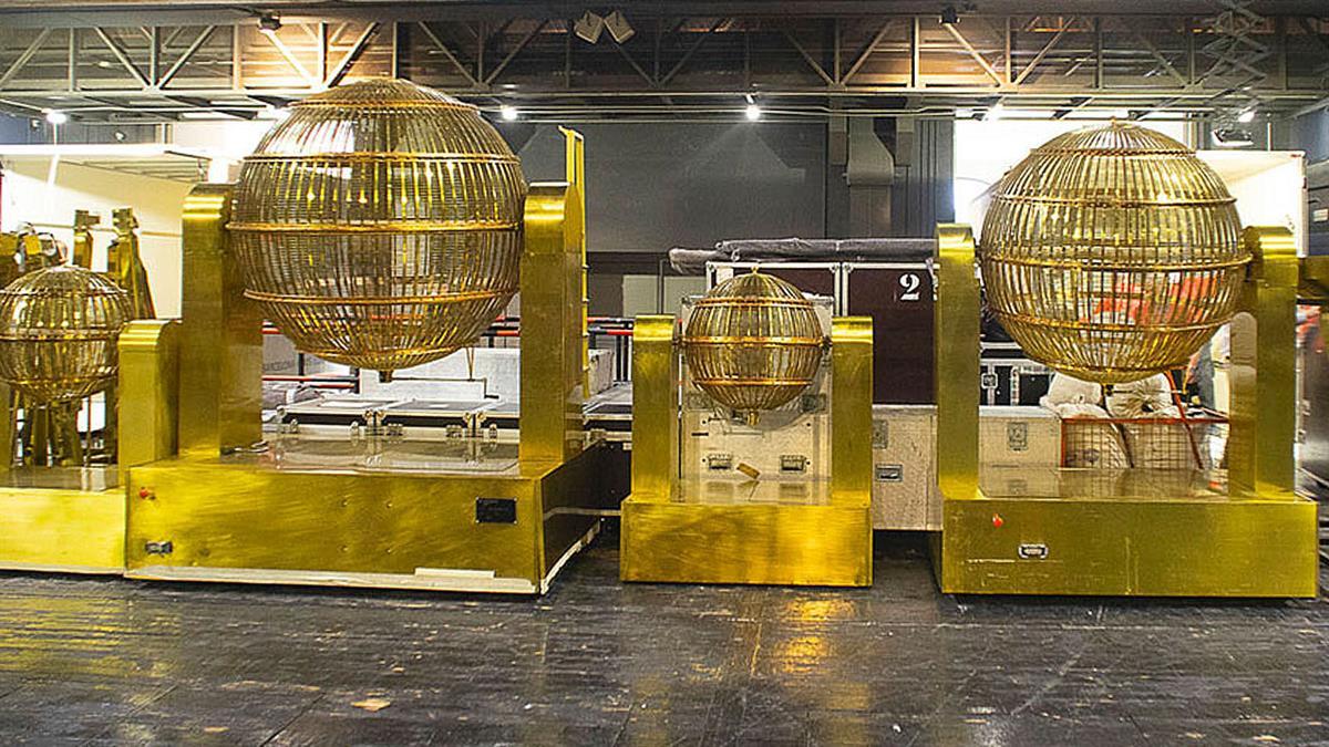 Como cada año, el bombo grande se ha ubicado en el escenario para acoger las 100.000 bolas de los números que participan en el Sorteo. Fue fabricado hace quince años, está realizado en una aleación de latón y bronce y tiene una altura de 2,64m, una anchura de 2,11m y un peso aproximado de 850kg. El diámetro de la esfera es de 1,58 m. Ya le acompaña en el escenario el bombo pequeño, el de los premios, realizado con los mismos materiales.