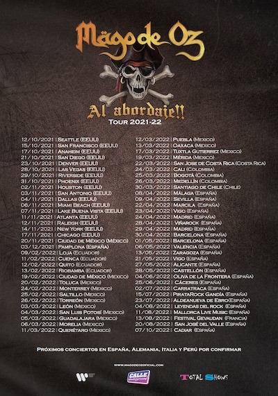 Mägo de Oz continúan imparables. Tras anunciar nuevas fechas en Madrid y Barcelona, por haber agotado las entradas, y confirmar su visita a Costa Rica, el grupo suma ahora nuevas fechas a su "Al Abordaje Tour", que seguirá llevándolos por todas partes para presentar su nuevo disco, "Bandera Negra".