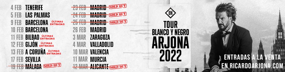 Además de las fechas españolas, la extensa gira “Blanco y Negro” llevará a Ricardo Arjona por 22 ciudades de Europa en 2022, incluyendo plazas tan emblemáticas como Berlín, Roma, París o Londres entre otras.