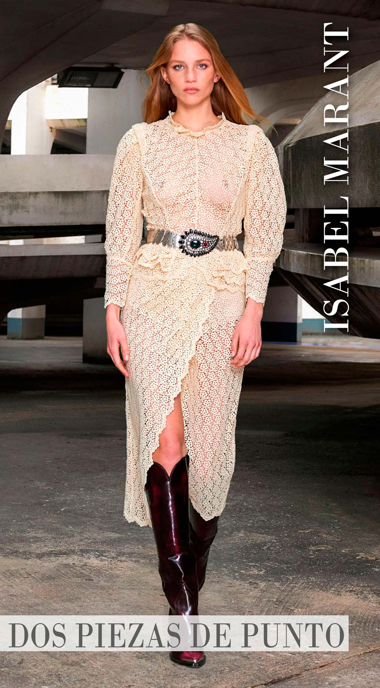 Este otoño/invierno, adquiere fundamental importancia la elección de los tejidos. Los matching looks de punto, es decir dos piezas o tres piezas de punto, el  efecto acolchado, el cuero y el borrego, serán los tejidos predominantes.