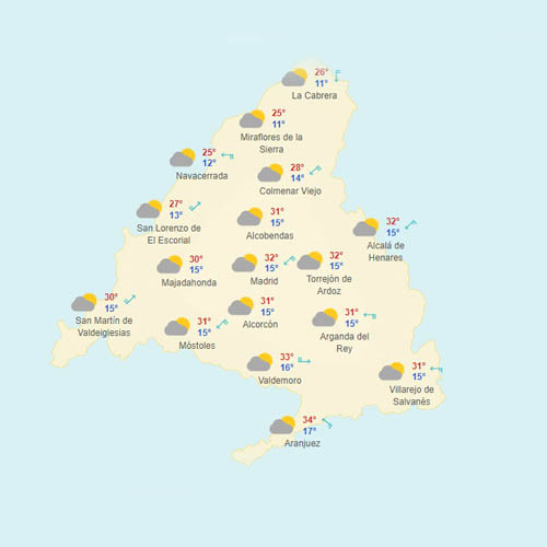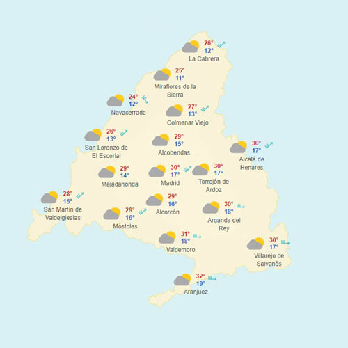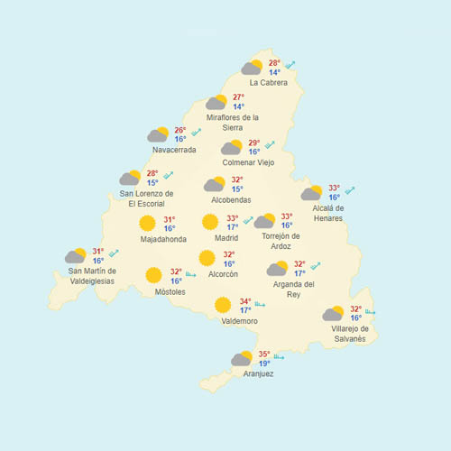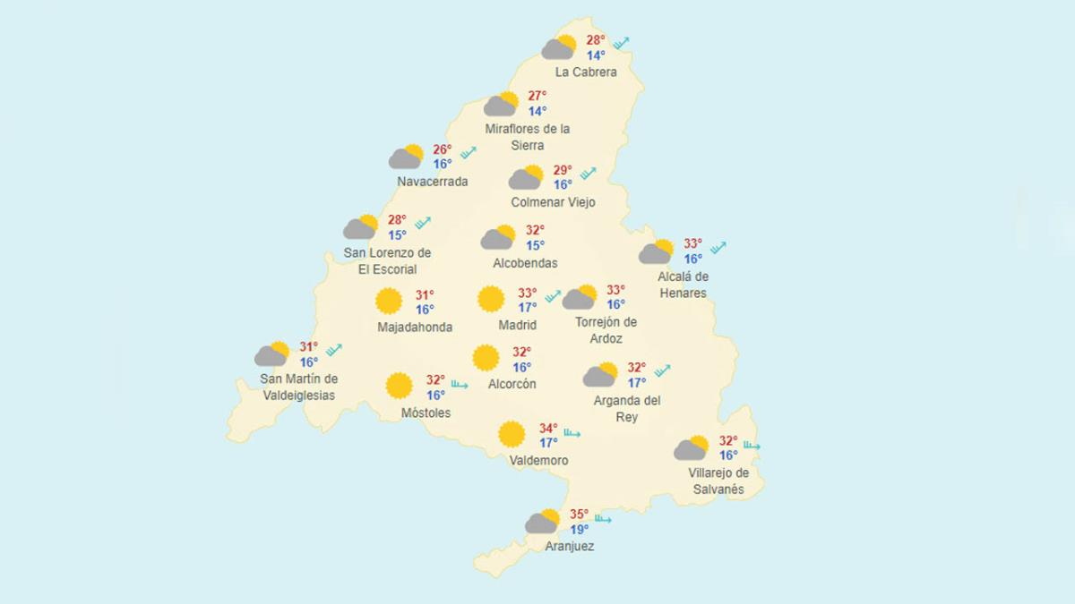 Tras unas semanas marcadas por las tormentas y las lluvias, el sol vuelve a salir con la llegada del verano. Este fin de semana del 25 al 27 de junio, las temperaturas van a comenzar a subir, pero no llegarán a ser muy altas a lo largo de la Comunidad de Madrid. Las máximas rondarán los 30 grados en la mayoría de los municipios de la región.