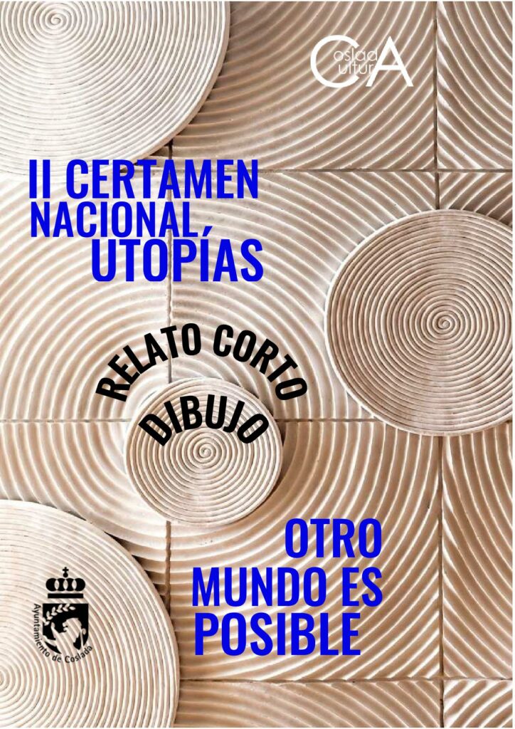 El Ayuntamiento de Coslada, a través de la Concejalía de Cultura, convoca el II Certamen Nacional de relatos cortos y pintura “Utopías: otro mundo es posible”, cuyo fin es potenciar y difundir la creación pictórica y la creación literaria en lengua castellana.