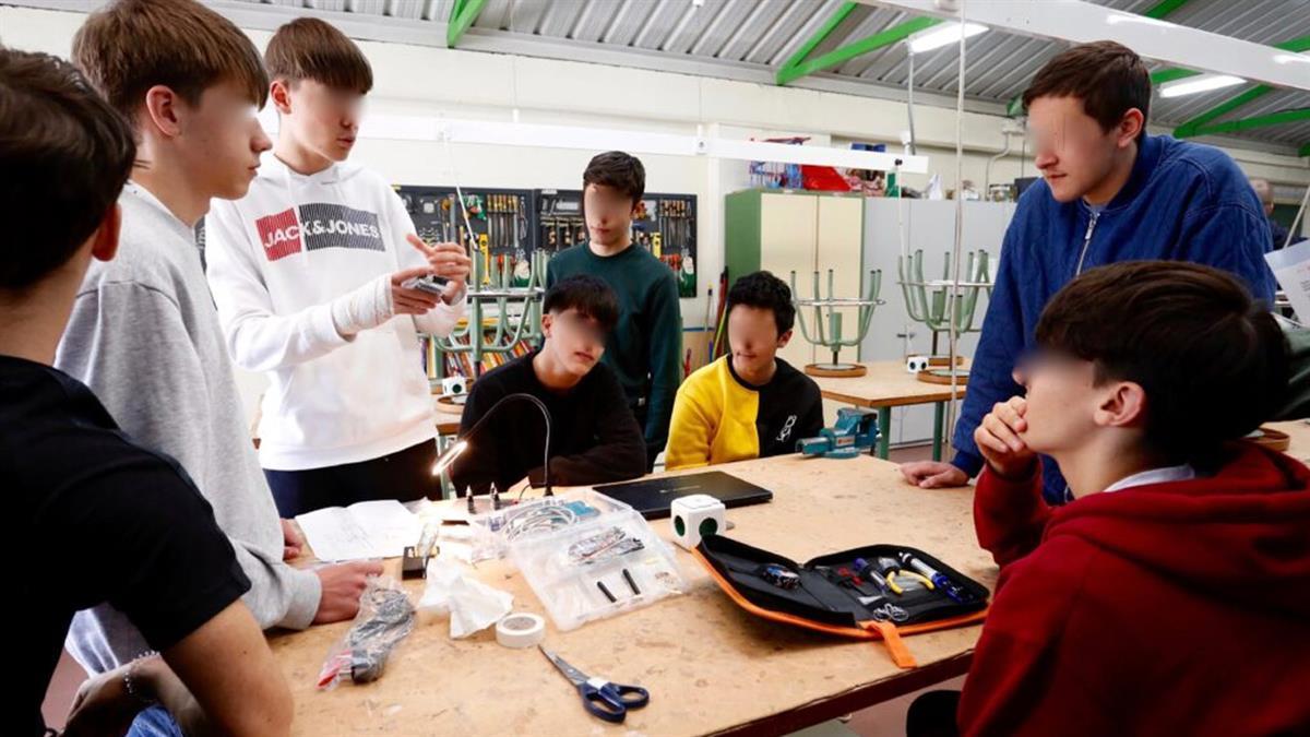 La elaboración de los elementos de cada satélite ha tenido lugar en el aula, un espacio muy amplio con diferentes espacios de trabajo, incluido un taller repleto de herramientas de todo tipo y una impresora 3D con la que han fabricado las piezas necesarias. Allí, entre las mesas, se arremolinan los y las jóvenes, compartiendo ideas en un animado bullicio.