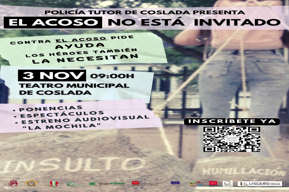 Coincidiendo con el Día Internacional contra la Violencia y el Acoso Escolar, Coslada desarrollará el próximo jueves 3 de noviembre unas jornadas en las que "El acoso no está invitado". Impulsada desde el Ayuntamiento de Coslada a través de la sección de Policía tutor de la Policía Local, esta iniciativa busca convertirse en pionera y que se exporte a demás ciudades de España, para que se afronte de una vez por todas uno de los problemas que más preocupan hoy en día a la comunidad educativa madrileña y española.