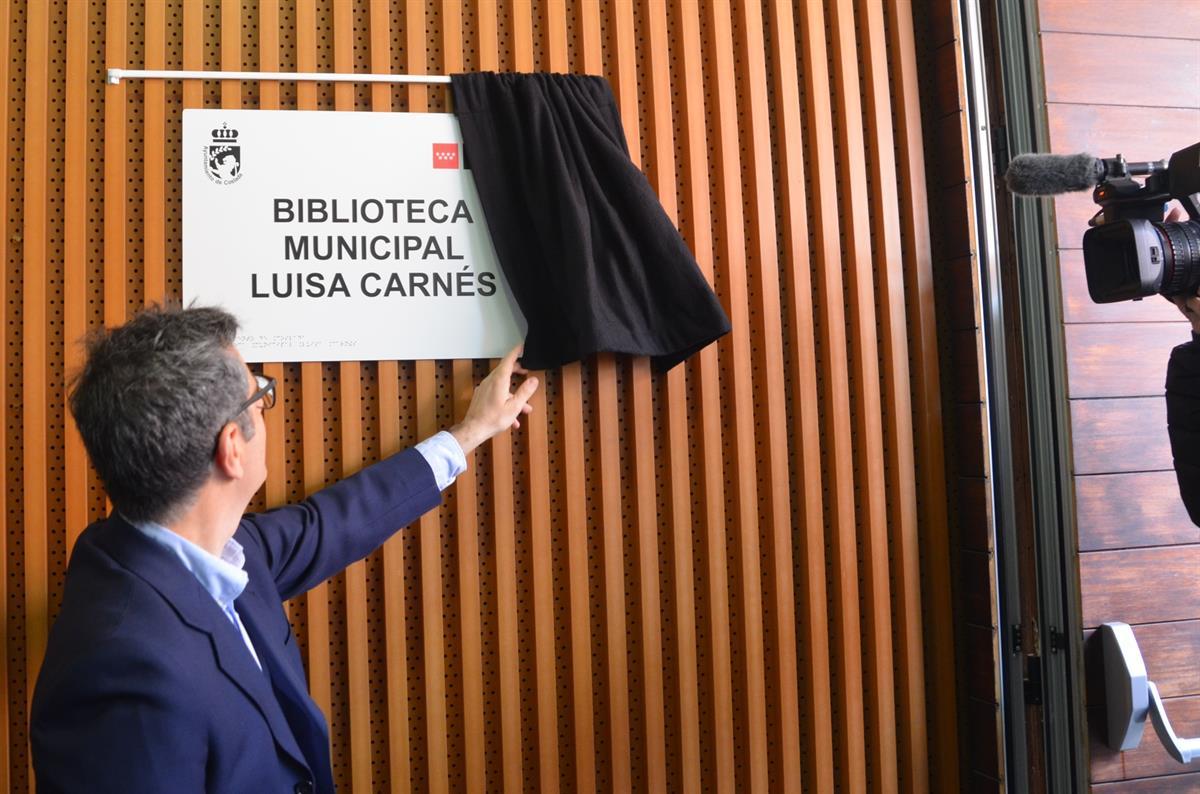 El evento consistió en el descubrimiento de la placa en la que aparece el nombre de Luisa Carnés que, desde el sábado, puede verse en el acceso principal de la Biblioteca. Antes de los discursos, la actriz Elisabet Altube, coprotagonista de “Tea Rooms” , adaptación teatral de la novela homónima de la propia Luisa Carnés, leyó un pasaje de la misma.