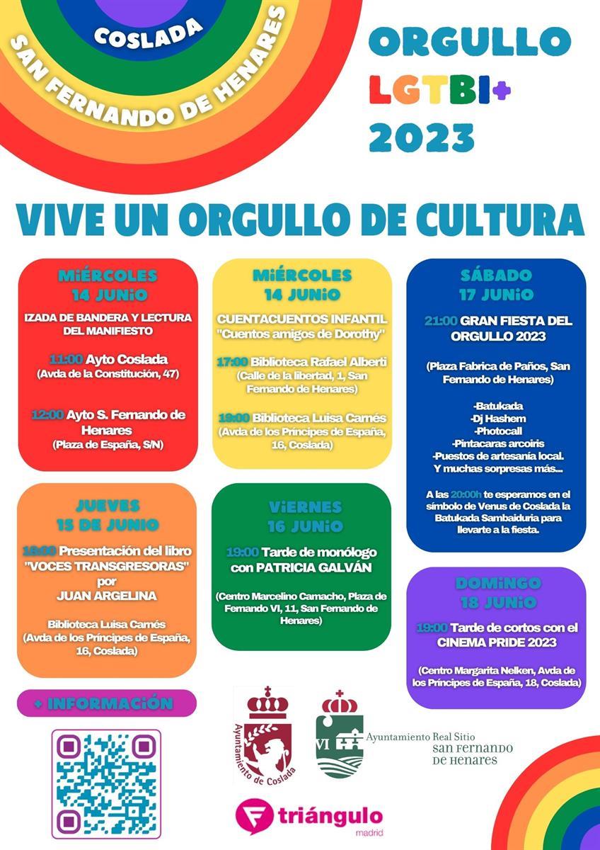 El Ayuntamiento de San Fernando de Henares, a través de su concejalía de Igualdad y en estrecha colaboración con el vecino Consistorio de Coslada, así como con la Fundación Triángulo, pone en marcha, un año más, un completo programa de actividades con motivo del Día Internacional del Orgullo LGTBI+, que se conmemora el próximo 28 de junio.