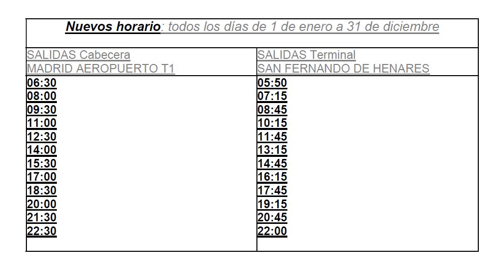 La Línea de autobuses interurbana 822 que une las ciudades de Coslada y San Fernando de Henares con el aeropuerto Adolfo Suárez- Madrid Barajas introduce una novedad que se hará efectiva en los próximos días. A partir del 20 de diciembre las conexiones entre ambos municipios y el aeródromo pasará a ser diaria y durante todo el año. El cambio es que hasta ahora funcionaba de lunes a viernes, quedando los fines de semana sin servicio.