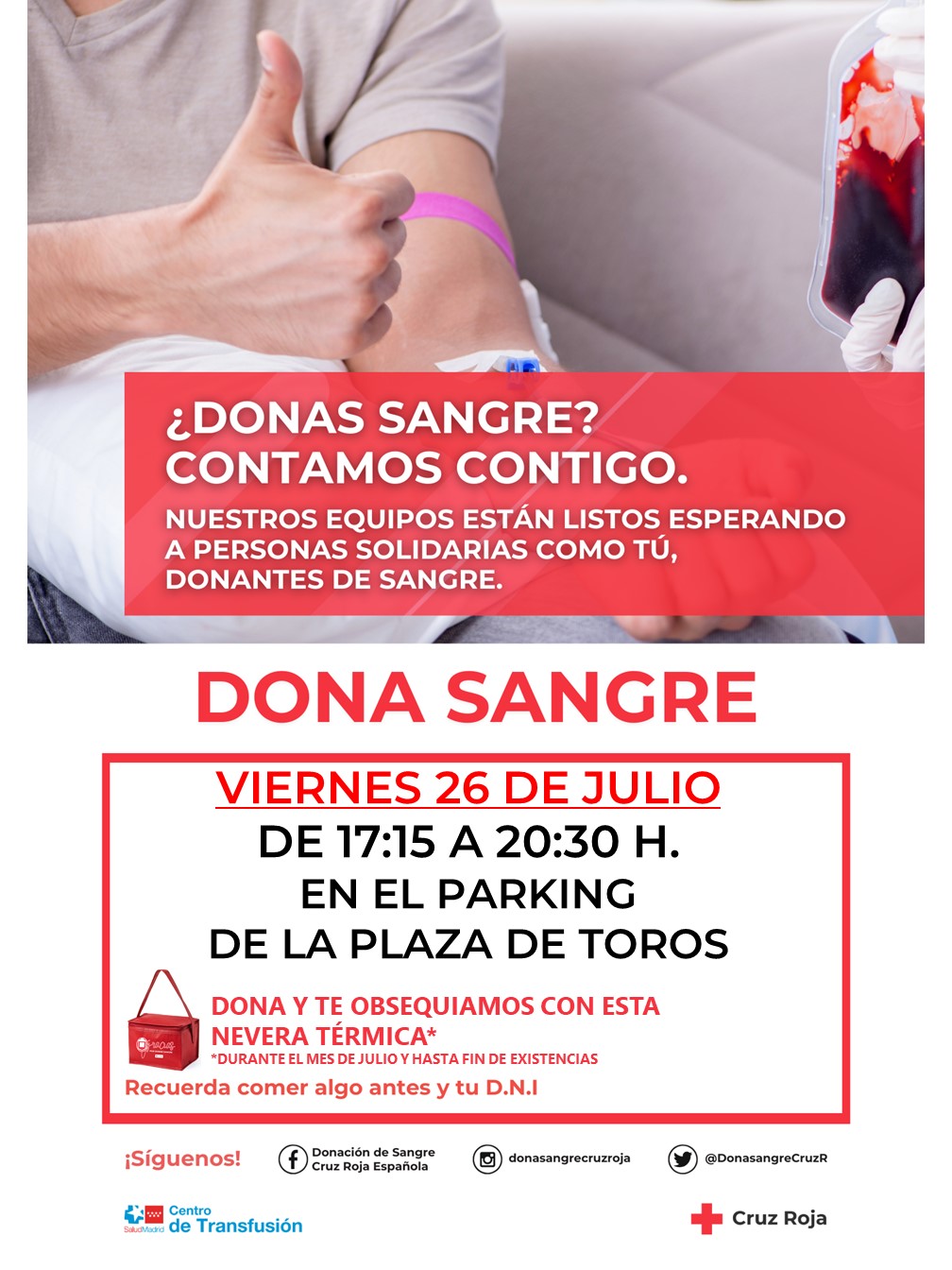 Además, este gesto de generosidad tiene premio, ya que los donantes recibirán de regalo una nevera térmica. Recuerda, so sí, ingerir alimentos antes y llevar tu DNI para poder donar.