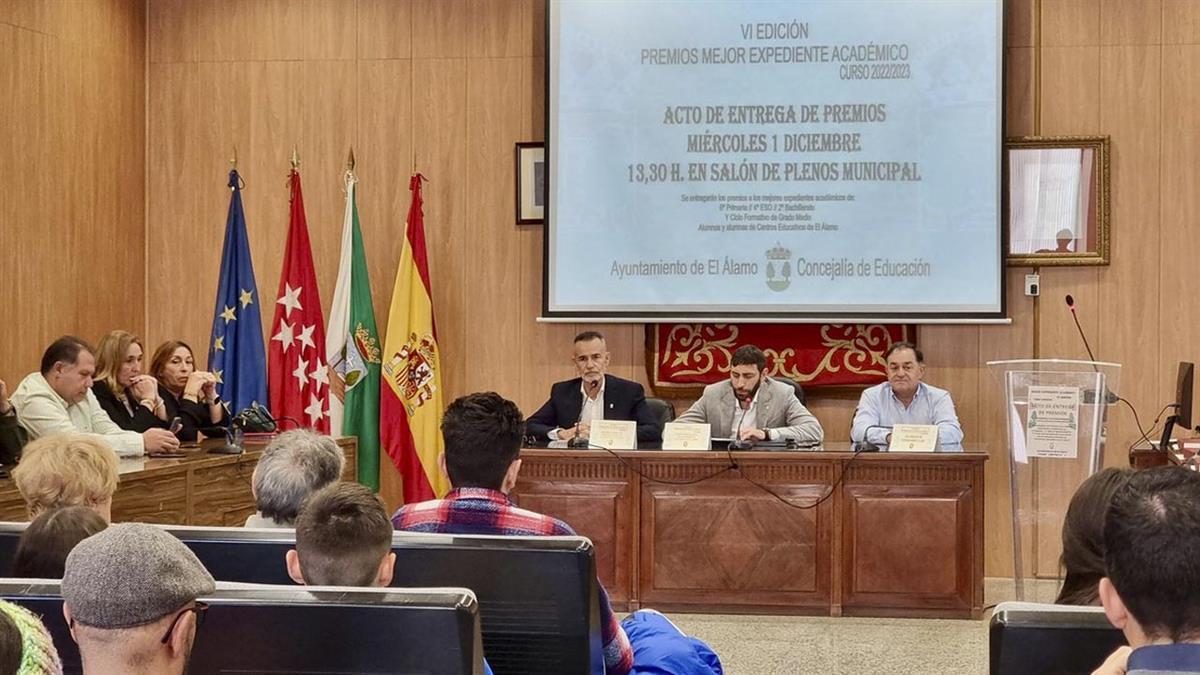 En El Álamo se ha dado un nuevo impulso al área de Educación mediante diversas actuaciones, entre las que destaca el reconocimiento al esfuerzo y dedicación de los estudiantes que lograron los mejores expedientes académicos durante el curso 2022/23, con la celebración de una nueva edición de los premios al mérito de estos alumnos, pertenecientes a los Colegios Públicos El Álamo y Los Nogales, y al IES del municipio.