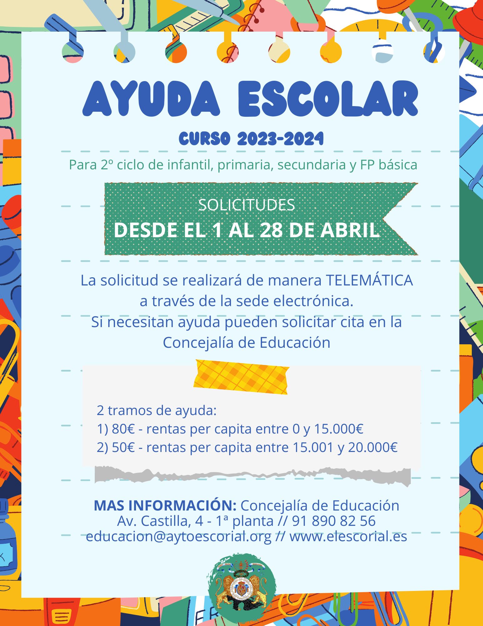 La concejalía de Educación del ayuntamiento de El Escorial abre el plazo de solicitud de becas escolares para el curso 2023/2024. Las familias del municipio interesadas en obtener las ayudas podrán presentar la documentación requerida hasta el próximo 28 de abril.