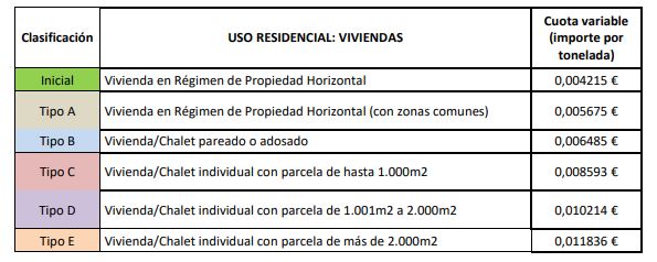 Sin embargo, para la cuota variable del ejercicio de 2026 y siguientes se calculará en función de los importes indicados en las siguientes tablas, correspondientes al coste por toneladas totales vertidas en el municipio: