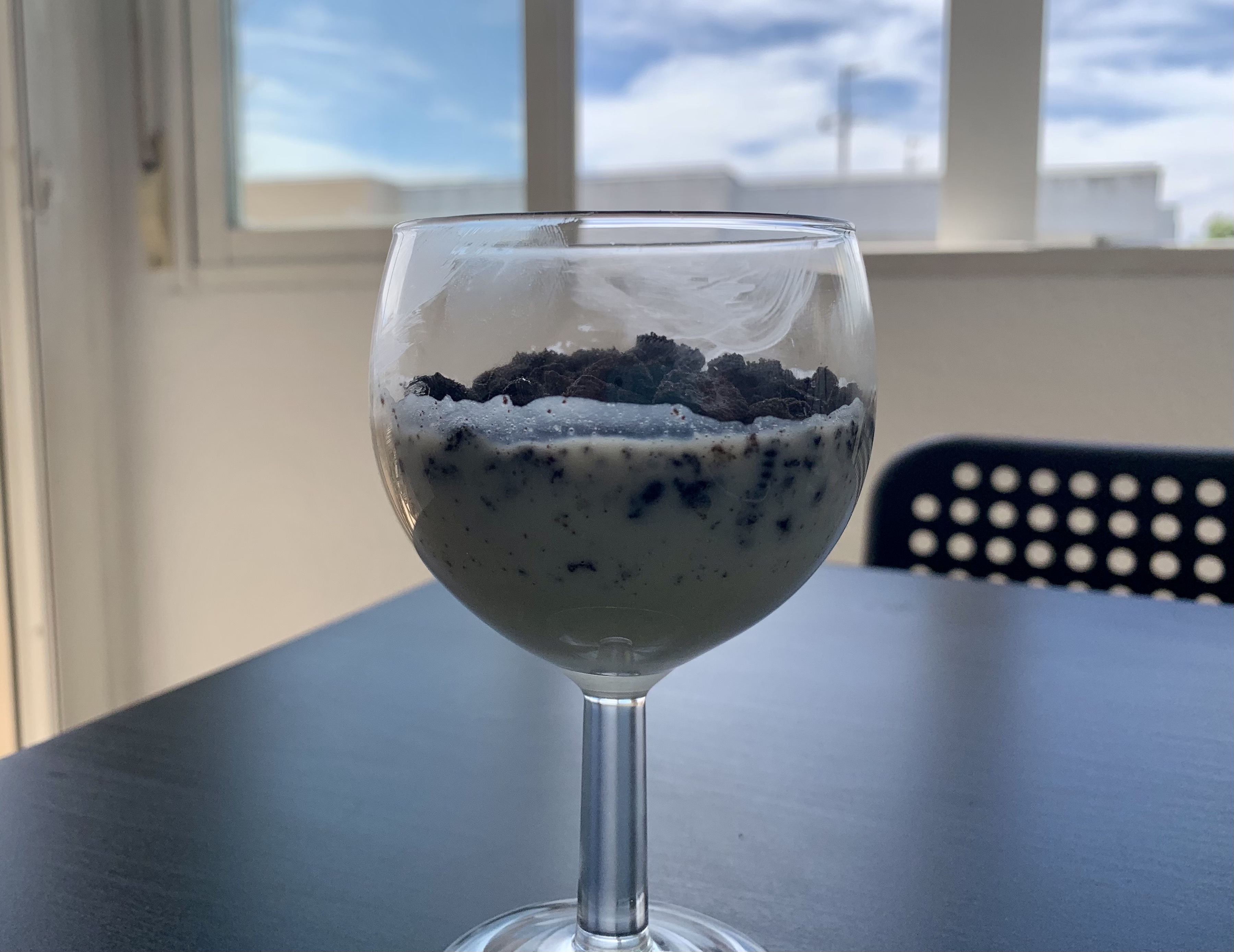 Para la decoración, proponemos añadir nata montada y una galleta Oreo.