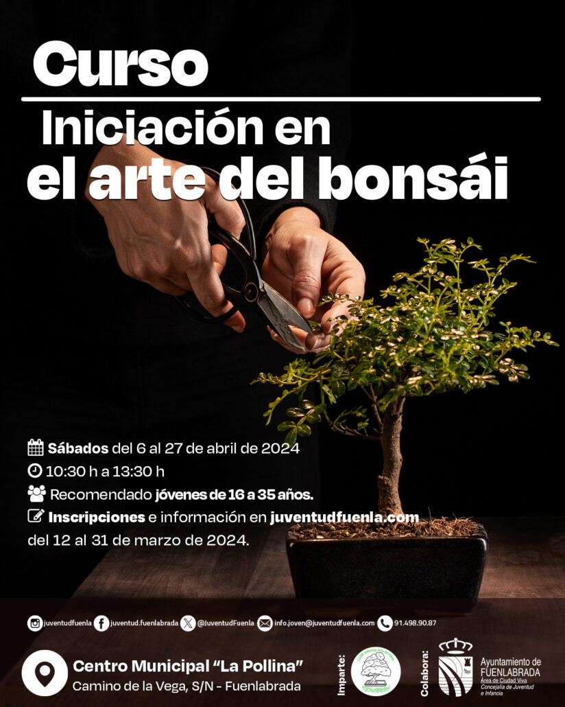 La Asociación Club de amigos del Bonsái de Fuenlabrada en colaboración con la concejalía de Juventud e Infancia ha puesto en marcha un nuevo curso de Iniciación al Arte del Bonsái. En él, los y las participantes obtendrán conocimientos iniciales acerca de este arte milenario, aprendiendo a manejar diferentes técnicas de cultivo y diseño de Bonsáis.