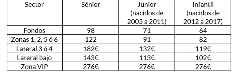 Los descuentos no son aplicables en la zona VIP y no son acumulables entre sí. Los precios de los abonos son los siguientes: