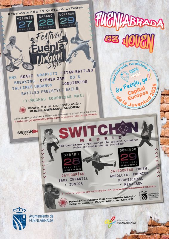 El Festival de Cultura Urbana ‘Switch On Madrid’ llega a Fuenlabrada para llenar sus calles de conciertos, exhibiciones de break, de BMX, batallas de gallos, sesiones de Dj’s, campeonatos de danza y talleres infantiles.