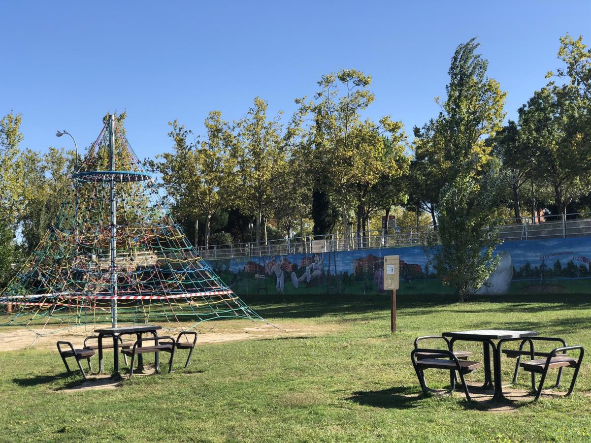 Parque infantil: Situado a mitad del parque, nos encontramos una gran pirámide de cuerdas para que puedan jugar los mas pequeños de la casa.