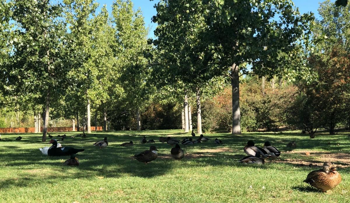 Zonas verdes: Hay varias zonas en las que podremos encontrar grandes explanadas de césped para poder estar con una toalla tranquilamente. La mas destacable, es la que hay justo en la primera entrada, hay una pequeña colina y puedes disfrutar de unas maravillosas vistas del lago. La otra en cambio esta mas recogida, se encuentra en uno de los extremos del parque, destaca por la intimidad que aporta en relación al parque, al estar rodeada de grandes y frondosos arboles generan un ambiente tranquilo y relajado.