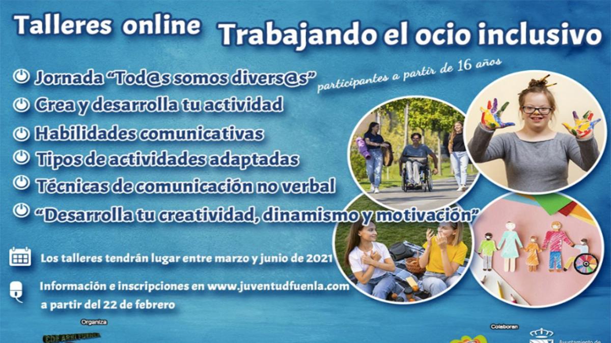 Fuenlabrada, desde la concejalía de Juventud y en colaboración con la asociación Arbifuenla y el Consejo de la Juventud de Fuenlabrada, organiza un curso gratuito y online de formación no reglada sobre ocio inclusivo dirigido a jóvenes mayores de 16 años. El curso está formado por seis talleres que ayudarán a las personas con diversidad funcional.