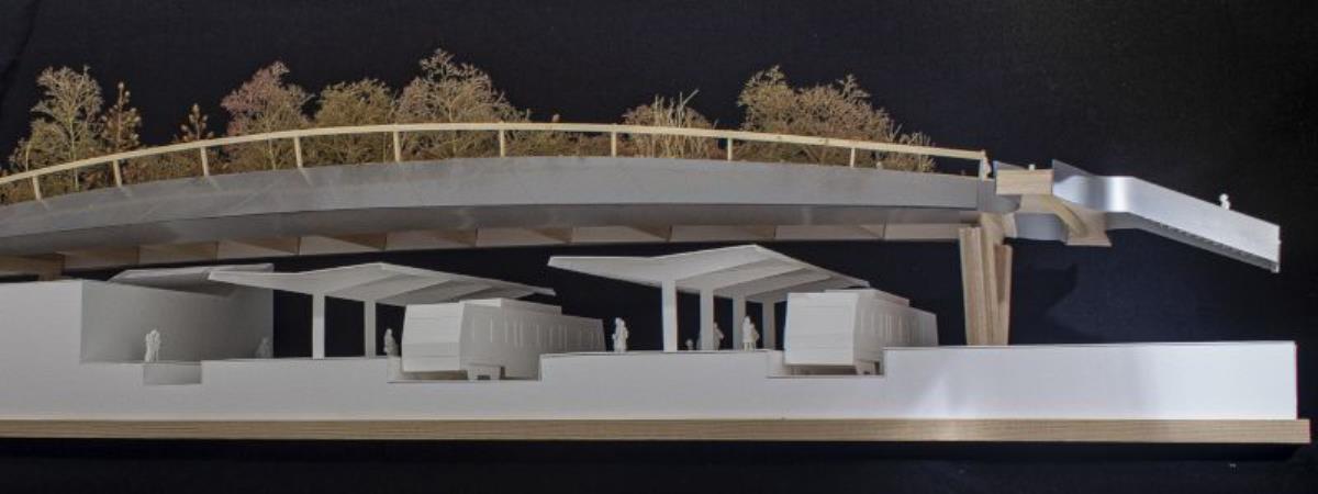 El estudio Díaz Donzel Arquitectos ha presentado una maqueta a escala del proyecto de la pasarela que unirá la Plaza de la Constitución con la calle de la Vía, cruzando la estación de Cercanías de Fuenlabrada Central.