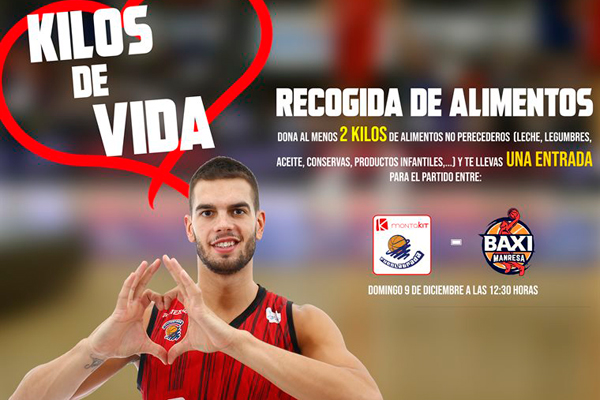 Por cada 2 kilos de alimentos recogidos, no perecederos, que no necesiten ser conservados en frío, os daremos una entrada paras el partido que juega el Montakit Fuenlabrada contra el Baxi Manresa, el próximo 9 de diciembre en el Pabellón Martín, a las 12:30 h.