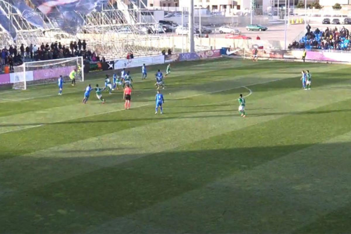 Quero por Vicente era la segunda incorporación con la idea de que fuera el revulsivo que le faltaba al equipo y así parecía cuando estrelló el balón en el larguero en su primera internada. El Fuenla comenzaba a llegar pero no terminaba de materializar las ocasiones y la gente se empezaba a poner nerviosa, frío, viento y la falta de ritmo hacían que todo se encaminara al lugar donde ningún fuenlabreño quería. La ansiedad y el querer llegar rápido al área no hizo más que complicar el partido y dificultar la circulación del balón.