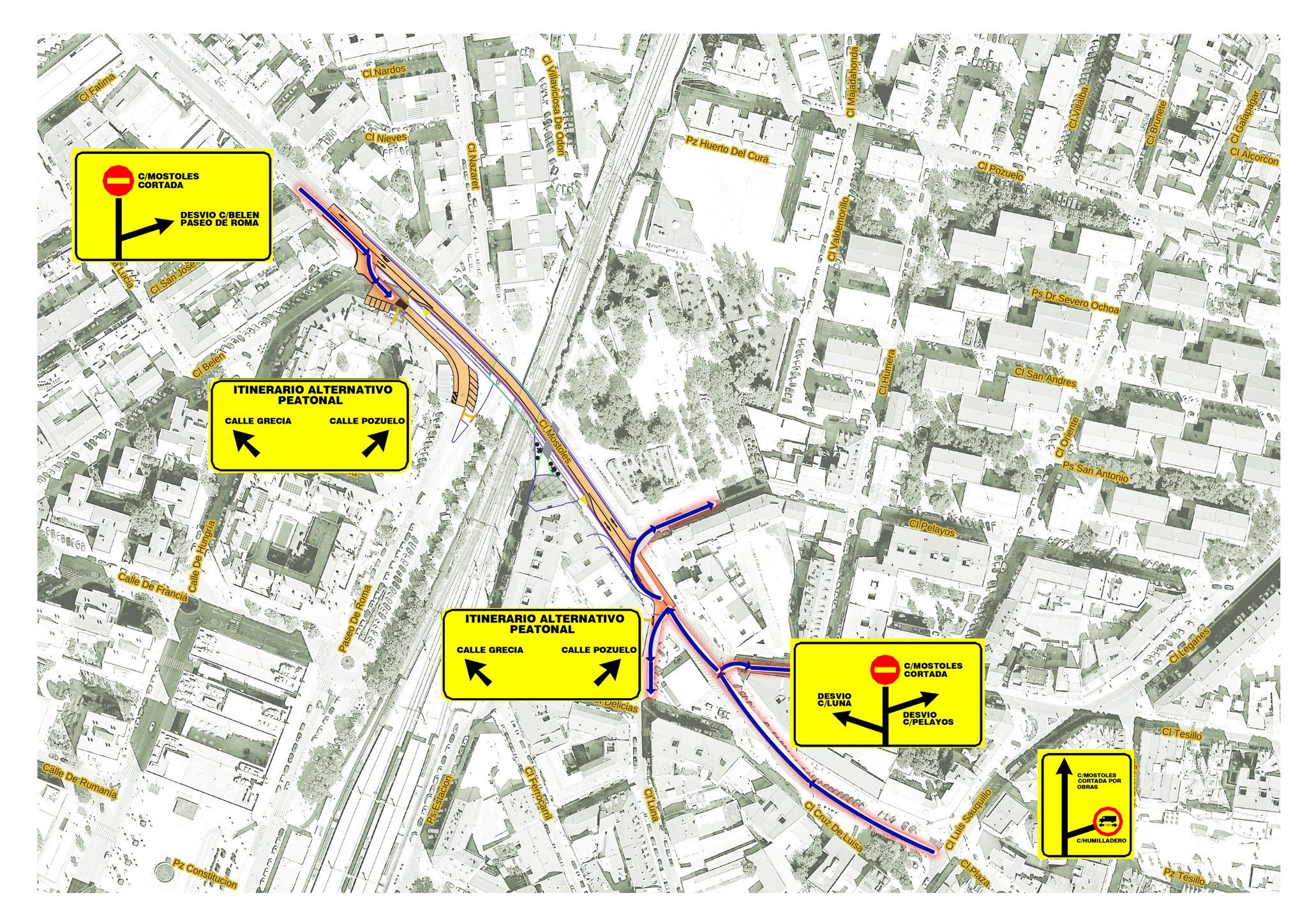 En cuanto a los peatones, se les recomienda utilizar los pasos inferiores de la calle Pozuelo y de la calle Málaga mientras éste de la calle Móstoles permanece cerrado.