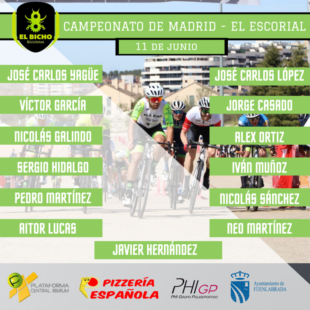 Para el Campeonato de Madrid, El Bicho-Pizzería Española-PHI contará con Javi Hernández, Neo Martínez, Aitor Lucas, Nicolás Sánchez, Iván Muñoz, Víctor García, Nicolás Galindo, José Carlos Yagüe, Alex Ortiz, Jorge Casado, José Carlos López, Sergio Hidalgo y Pedro Martínez.