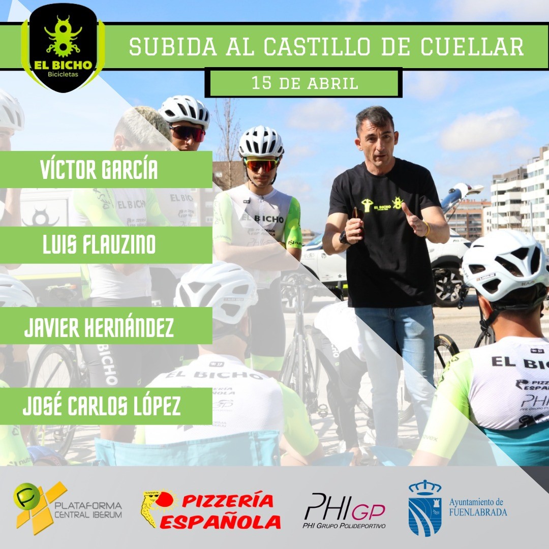 El sábado se disputará la tradicional cronoescalada con la exigente subida al Castillo de Cuéllar. Un recorrido de 1.5 kilómetros en un terreno que siempre pica para arriba y que culmina en unos últimos 500 metros infernales con rampas que llegan a alcanzar una pendiente del 18%. Para esta jornada, El Bicho Team – Pizzería Española – PHI contará con un equipo de gala capitaneado por Javier Hernández, que ya sabe lo que es levantar los brazos en el Castillo tras imponerse la temporada pasada, al que le acompañarán Luis Flauzino, Víctor García y José Carlos López.