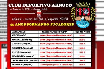 El Arroyo está buscando, para la modalidad de fútbol 7, jugadores para el equipo escuela, es decir, los niños nacidos entre 2011/12, para el conjunto prebenjamín, uno y dos años más mayores, y para el benjamín, nacidos entre 2007 y 2008. Para el fútbol 11, nuestra entidad busca futbolistas para categoría alevín, infantil, cadete y juvenil.