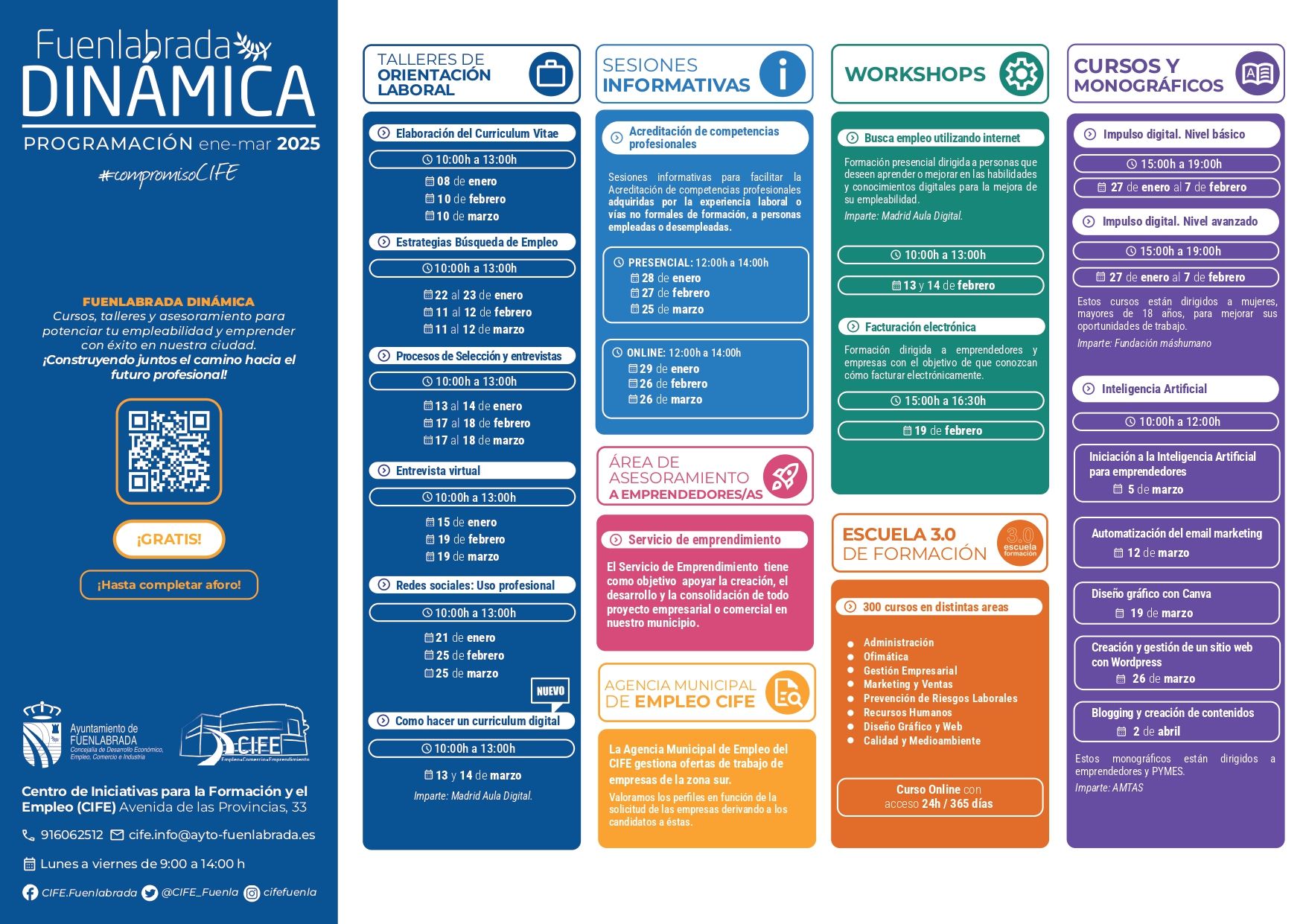 El Ayuntamiento de Fuenlabrada, a través del CIFE, ha presentado la nueva oferta de su programa formativo para el primer trimestre del año una nueva oferta del programa formativo de apoyo al desarrollo económico y el empleo 'Fuenlabrada Dinámica'.