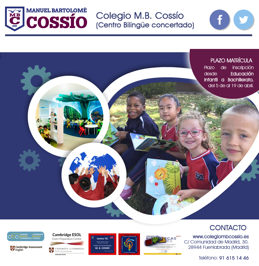 El objetivo del Colegio Manuel Bartolomé Cossío es buscar la formación integral de sus alumnos como ciudadanos del futuro, atendiendo a su diversidad, fomentando la cooperación, motivación, respeto y creatividad, donde el alumno sea el centro de toda la atención educativa. En el colegio se incorporan nuevos avances y metodologías: Aula de Inteligencias Múltiples, Aprendizaje Cooperativo, Trabajo en las aulas con Ipad, proyectos de innovación, Erasmus…