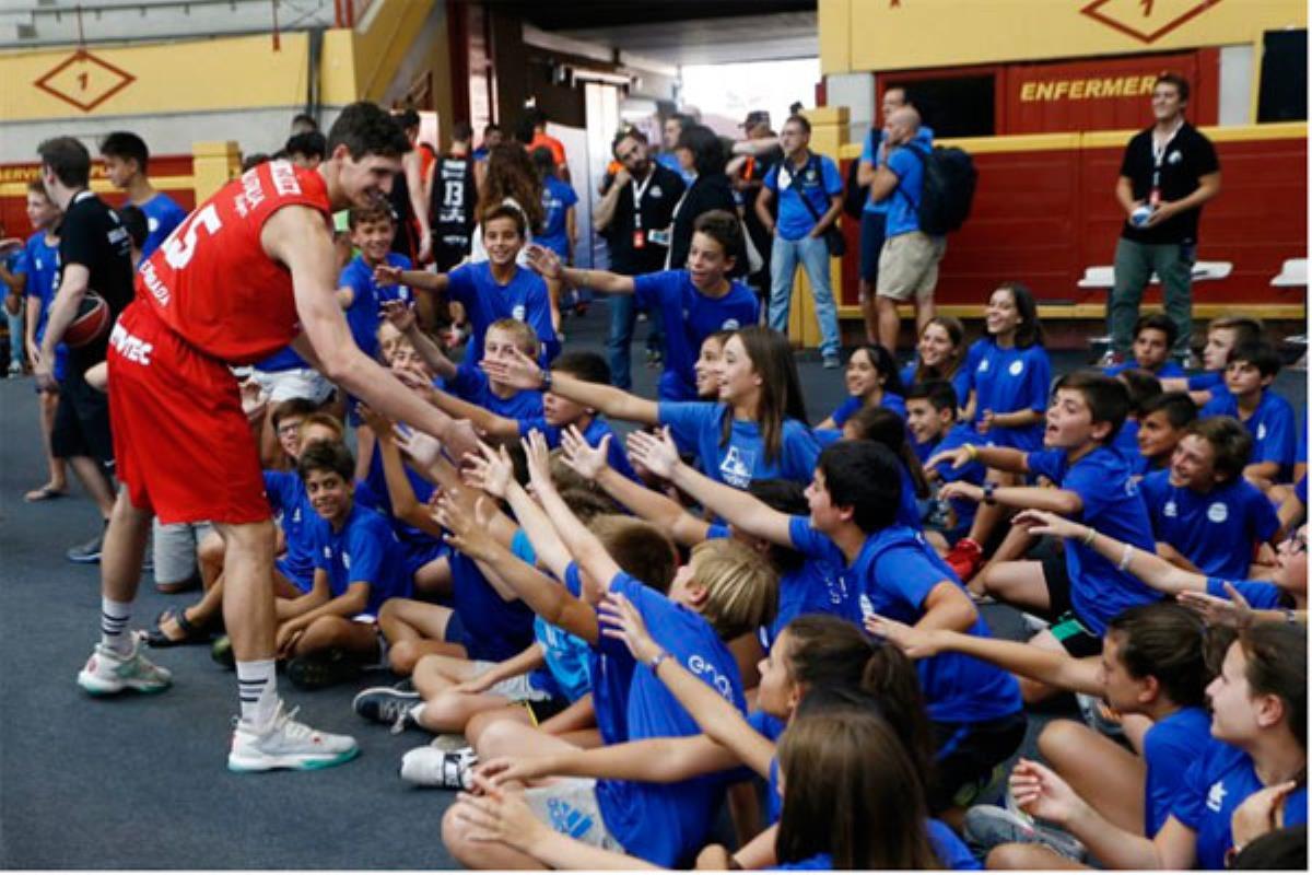 Chema González saludando a los niños/ Baloncestofuenlabrada