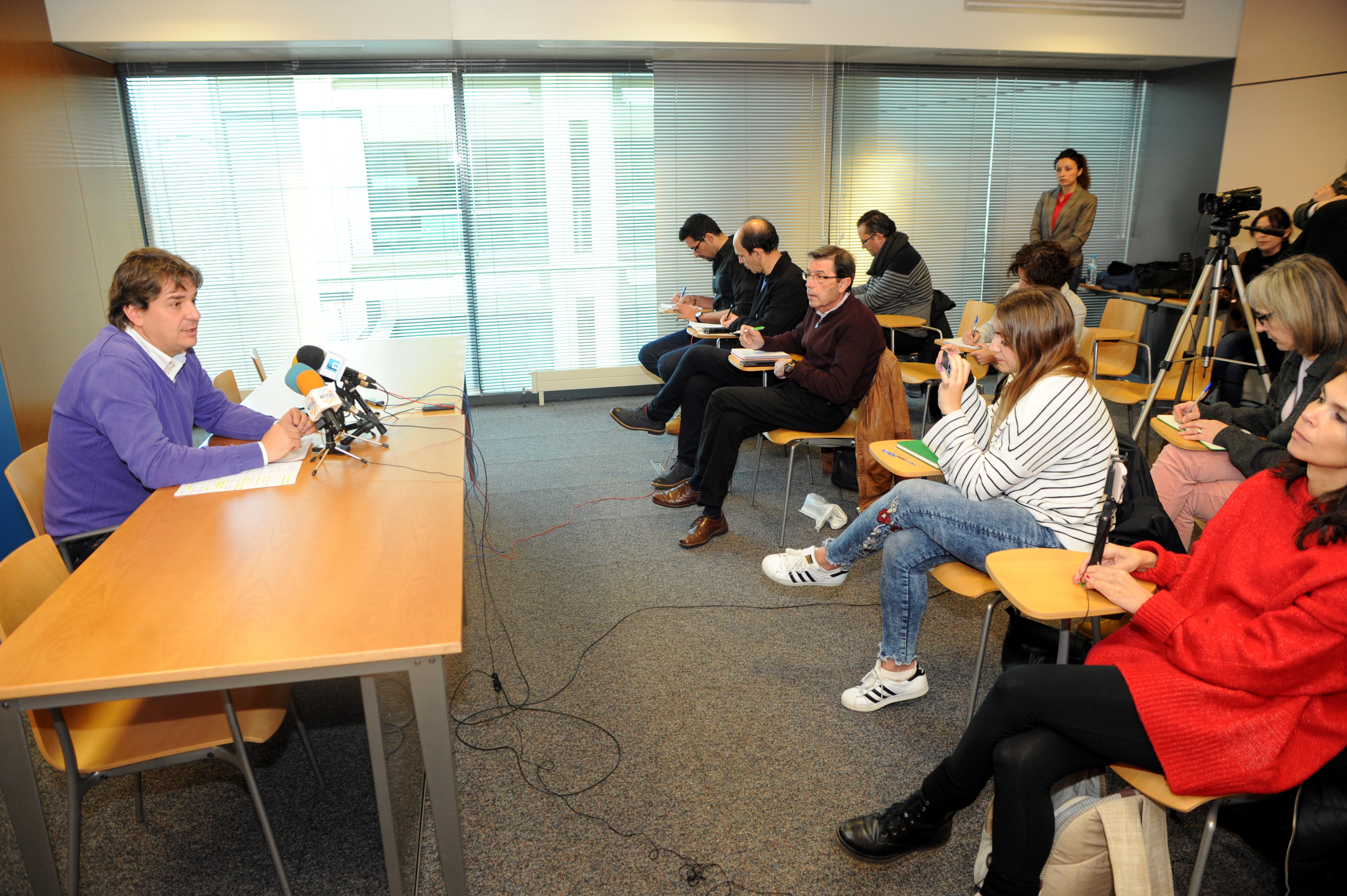 Javier Ayala atendiendo a los medios de comunicación. Fuente: Ayto. Fuenlabrada.