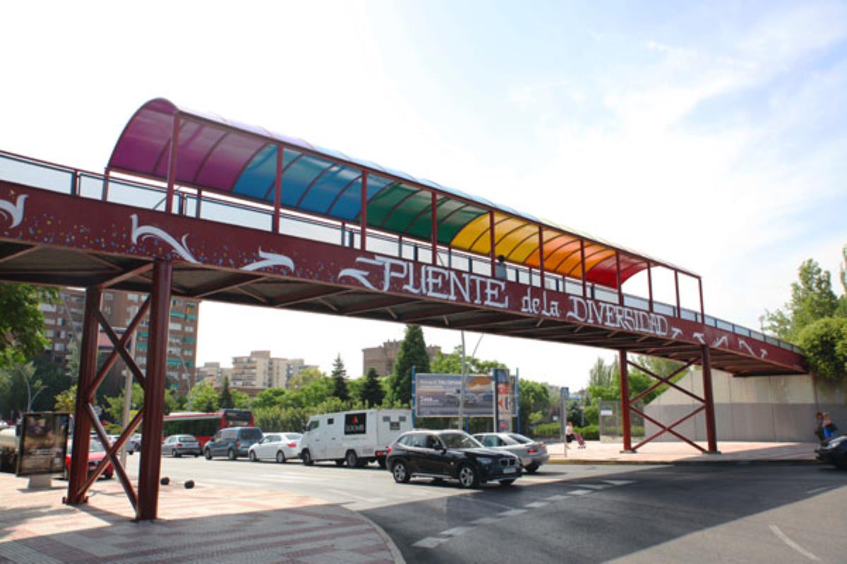 La leyenda Puente de la Diversidad, lucirá en la parte que da al Camino del Molino. Su cubierta además, ha sido redecorada con los colores de la bandera del arco iris.